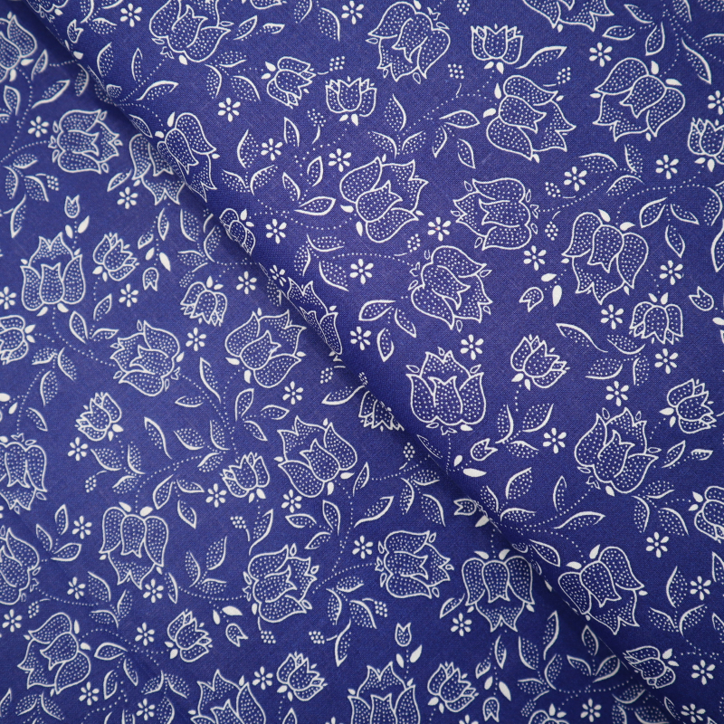 Bavlnená látka folk modré tulipány
