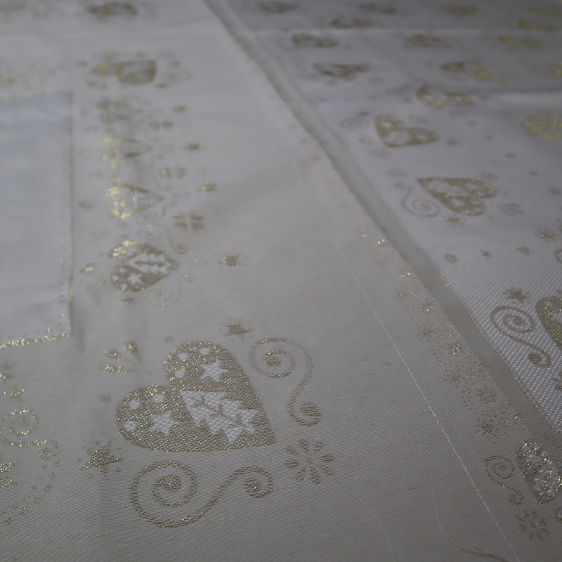 Jacquard panel 3x obrus - zlaté srdiečka s lurexom 80x160cm + 2x 80x80cm