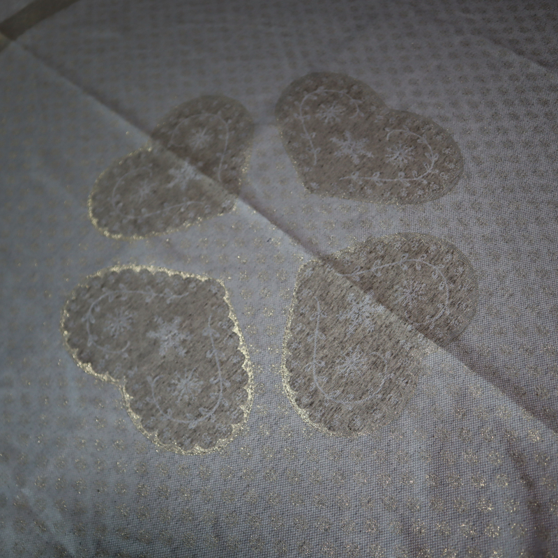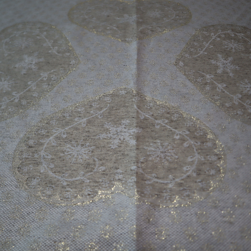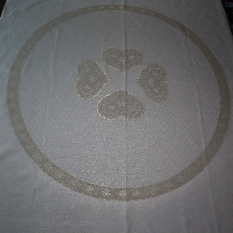 Jacquard panel kruhový obrus/sukňu - prírodno/zlaté srdiečka s lurexom Ø180cm