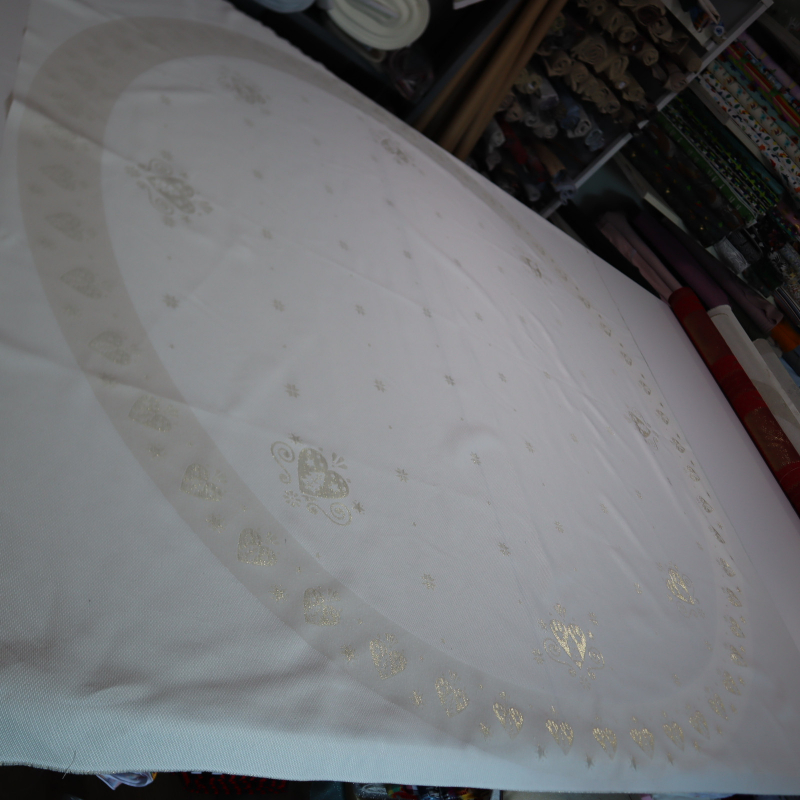 Jacquard panel kruhový obrus/sukňu - zlaté srdiečka s lurexom Ø180cm