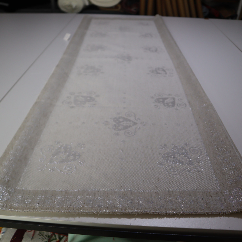 Jacquard panel na štólu - prírodno/zlaté srdiečka s lurexom 50x160cm