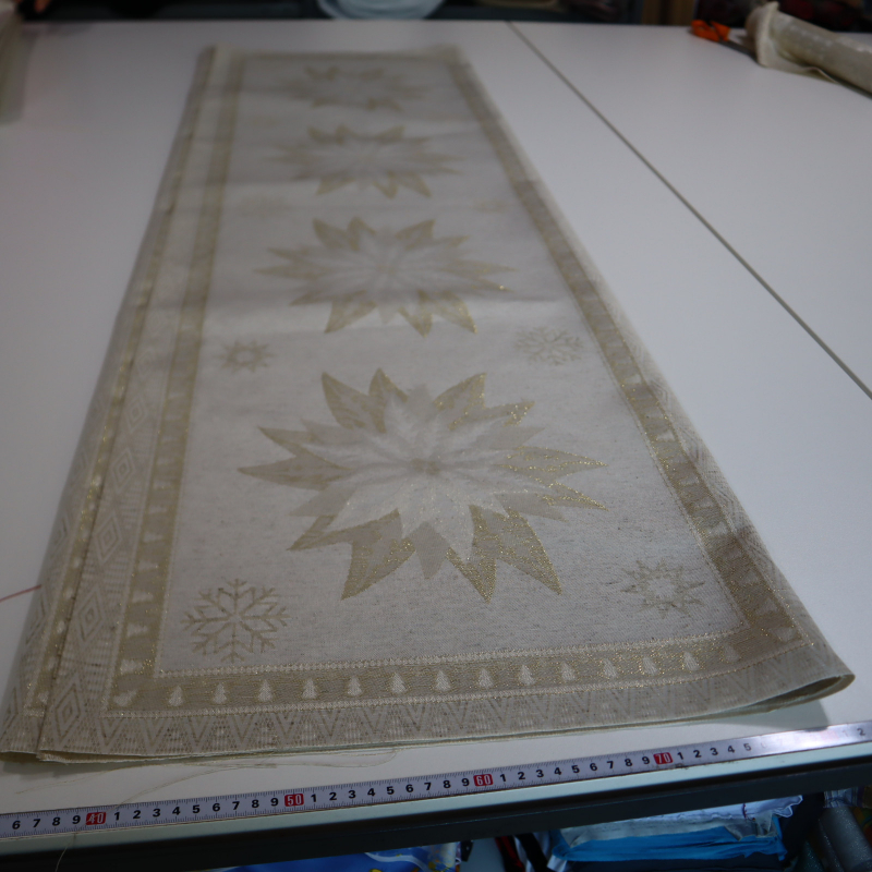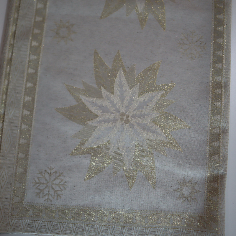 Jacquard panel na štólu - prírodno/zlatá hviezda s lurexom 40x140cm