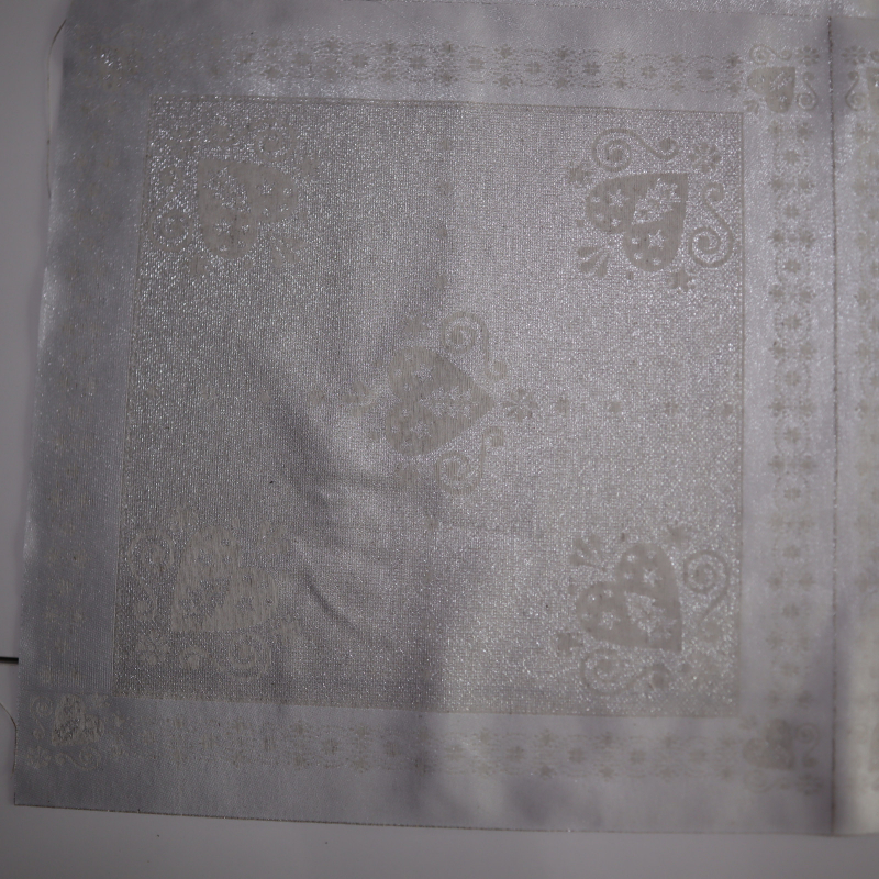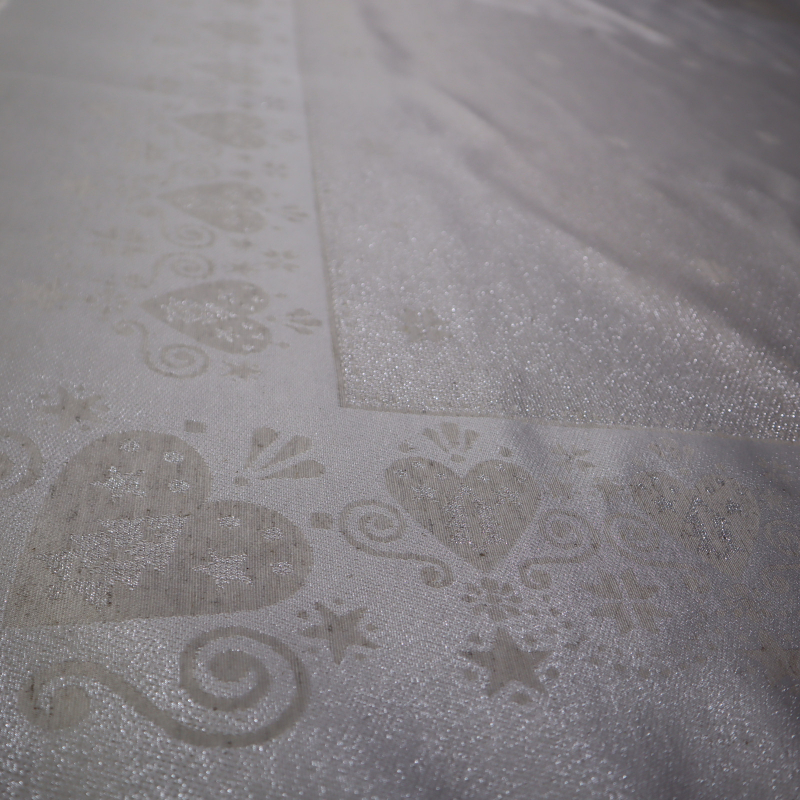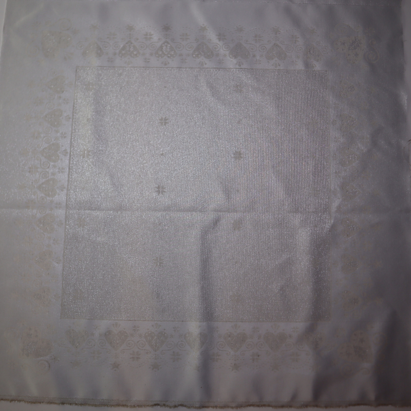 Jacquard panel obrus+2x vankúš - prírodno/strieborné srdiečka s lurexom 105x105 + 2x 53x53cm