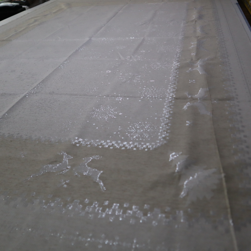 Jacquard panel obrus - prírodno/strieborný sob s lurexom 160x260cm