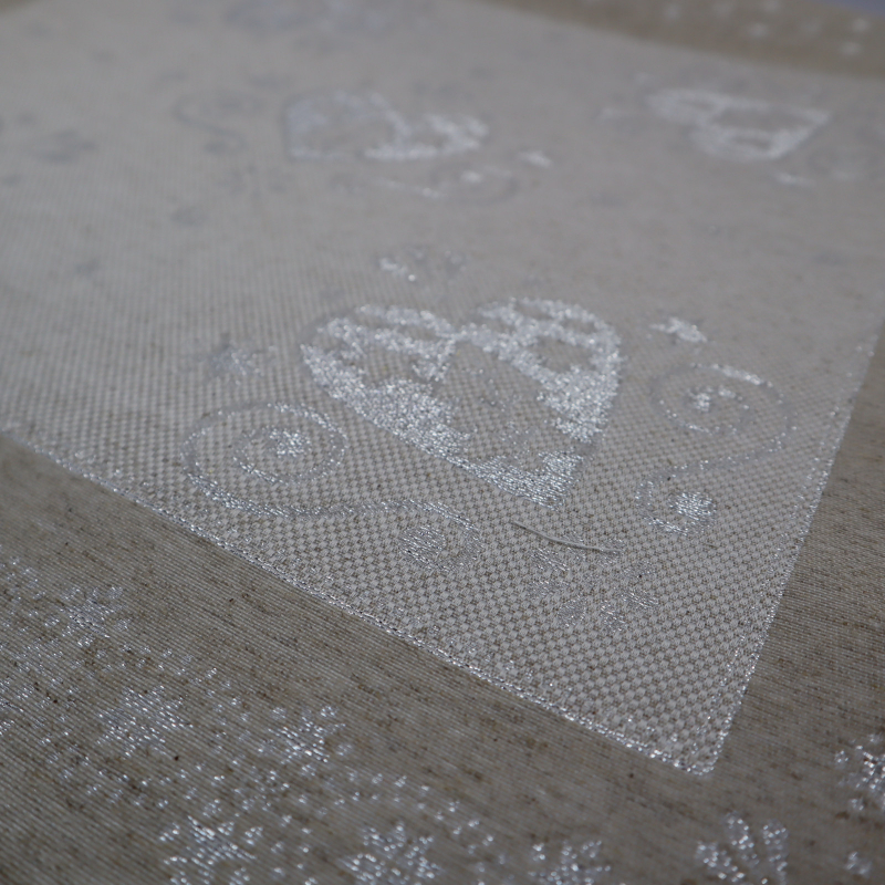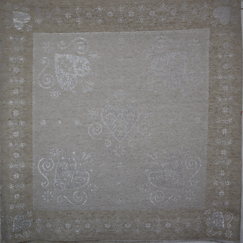 Jacquard panel - prírodno/strieborné srdiečka s lurexom 53x53cm