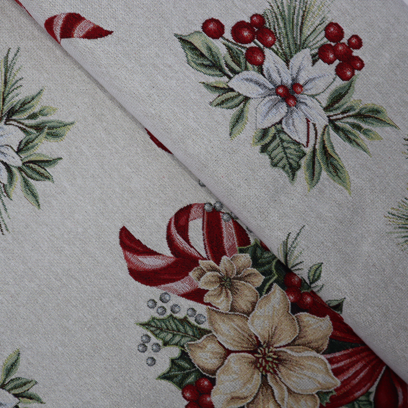 Vianočná dekoračná látka s bordúrou vianočná ruža