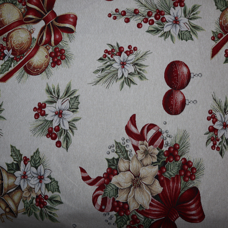 Vianočná dekoračná látka GOBELIN červené ozdoby1