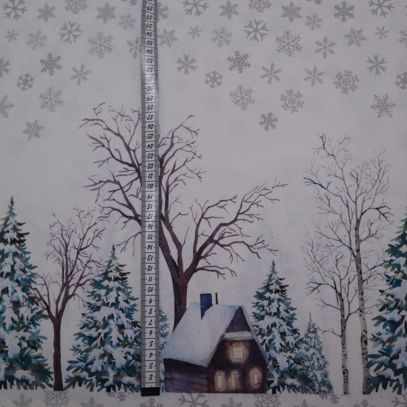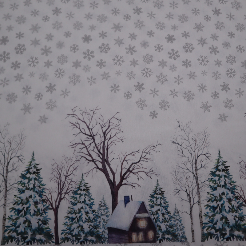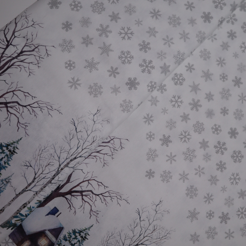 Vianočná bavlnená látka kocky a tučniaky 150cm