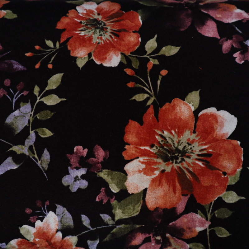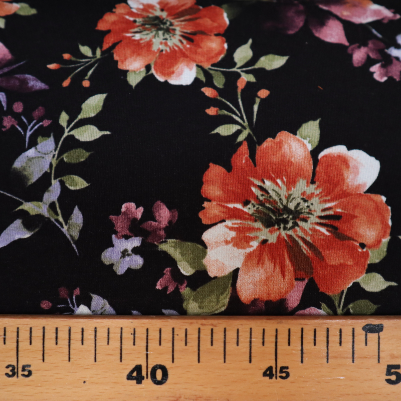 Viskózový úplet Jersey Print Flowers Black